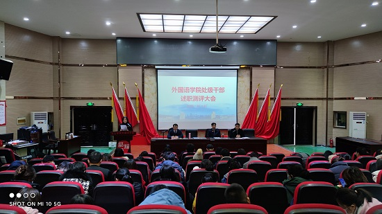 1月7日下午,外国语学院在香远楼三楼报告厅召开处科级干部述职测评大会,党委委员、副校长查振华出席会议并讲话。学院领导班子和全体教职工参加会议。