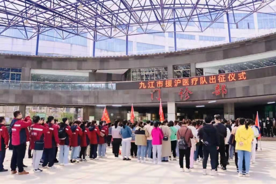 4月3日上午,按照省市卫健委统一部署,九江学院附属医院21名医护人员迅速完成集结,经南昌完成调配之后,同各地队员一起赶赴上海方舱医院执行医疗援助任务。队伍临行前,医院行政后勤部门为队伍准备了工作和生活物资,附属医院党政负责人等为队伍送行并进行简短动员。