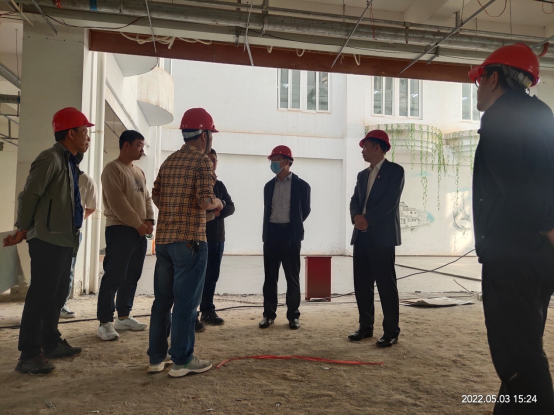五月的校园,春风和煦,繁花似锦。主校区丹枫园各个项目建设正全面铺开、快速推进。5月3日下午,校党委书记赵伟前往逸夫图书馆调研改造建设情况。副校长、校园修编建设指挥部指挥长严平陪同调研。