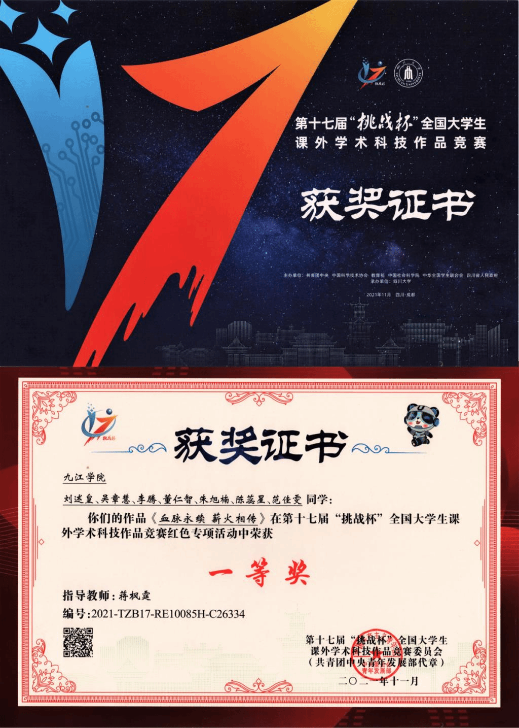 由共青团中央、中国科协、教育部、中国社会科学院、全国学联共同主办第十七届“挑战杯”全国大学生学术科技作品竞赛红色专项线下终审在四川大学举行,全国上千所大学推报的11184项作品报名展开激烈竞逐,共有500多件作品进入决赛。我校教育学院蒋枫霆老师指导的《血脉永续,薪火相传》项目荣获全国一等奖,外国语学院王燕、王少斌、李杰老师指导《深耕红色文脉,讲好八一故事》项目荣获全国三等奖。这是我校在“挑战杯”竞赛中的历史性突破。