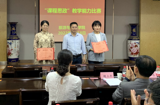 旅游与地理学院高度重视此次比赛,经过各教研室前期精心组织和推荐,7位老师参加了本次比赛。参赛教师根据学科课程特点,在教学设计中巧妙融入“理想信念、政治认同、文化自信、家国情怀、法治意识、道德修养、社会责任、使命担当、职业精神、人文素养”等思政元素,有效实现“知识传授”和“价值引领”有机统一,展示了各具特色的教学风采。经过激烈的角逐和评审们的认真评判,最后,陈金花老师获得一等奖,王燕华、李胭胭两位老师获得二等奖,宋婷、张力、崔明月、望勇四位老师获得三等奖。