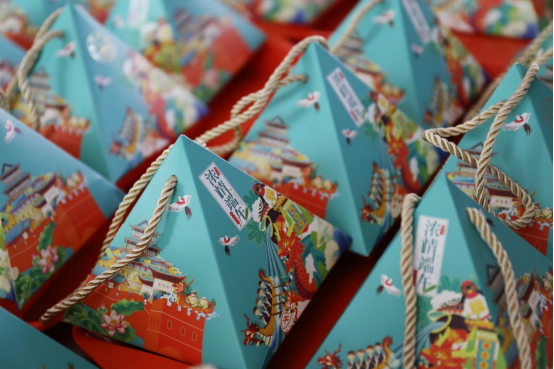 饮食服务中心的刘沁老师介绍,端午节系五彩线,是古老习俗。五彩线是端午节吉祥物兼饰物,具有辟邪作用,兼有祈福纳吉的美好寓意。疫情当下的校园举办端午包粽子的传统文化活动是为了弘扬中华民族的传统文化,完善后勤服务的育人功能,为师生们营造更加积极健康的校园氛围,共同面对疫情的挑战。活动结束后,饮服中心给所有参加活动的师生们赠送了中心制作的文创粽子盒和鲜美的手工粽子。