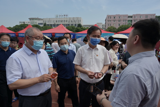为了贯彻落实党中央、国务院“稳就业”“保就业”决策部署,落实教育部“访企拓岗促就业专项行动”等活动要求,我校积极开展2022届毕业生就业工作“百日冲刺”行动,6月16日,我校在学校南区田径场举办了“点亮青春 绽放赣鄱”九江学院2022届毕业生就业专场招聘会,为毕业生离校前再提供岗位选择。当日上午,我校党委书记赵伟、校长陈小林、副校长严平等专门前往招聘会现场指导工作。