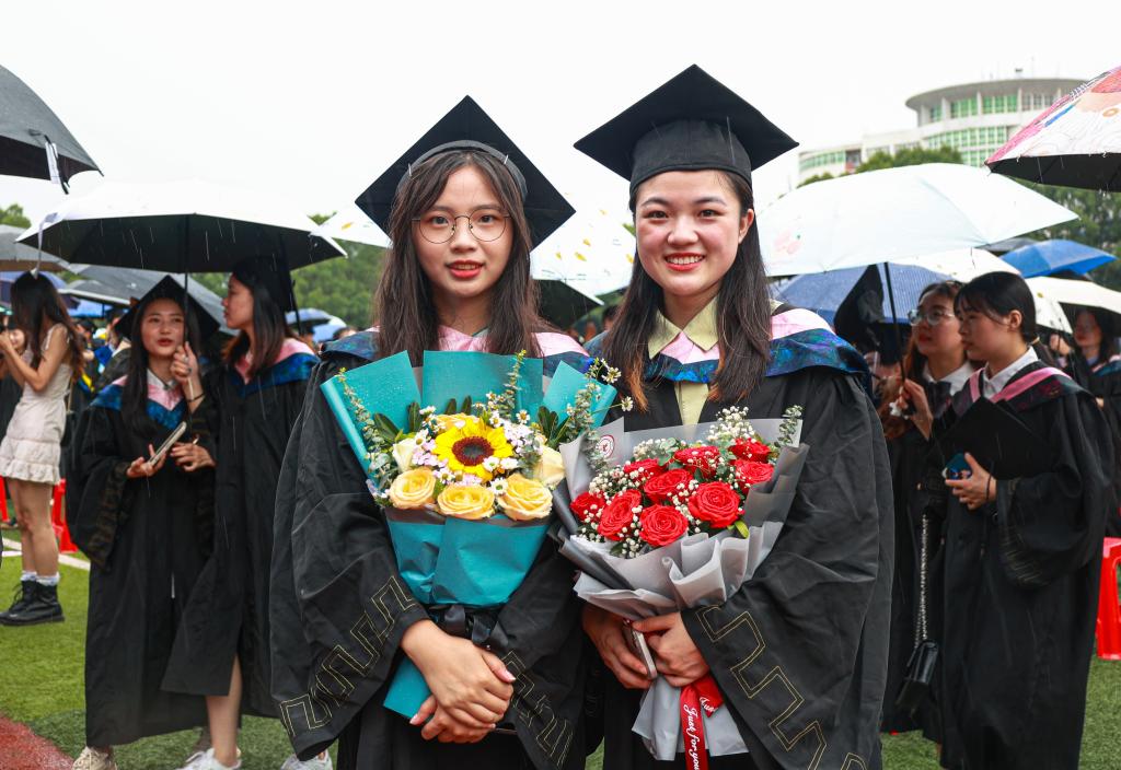 盛夏清和,芳草依依。6月28日上午8时许,我校在主校区南区田径场隆重举行2022届毕业生毕业典礼暨学位授予仪式。9060名毕业生在学校、师长和同学的见证下,在雨中依依挥别母校,带着母校和师长的嘱托和祝福踏上人生新征程。