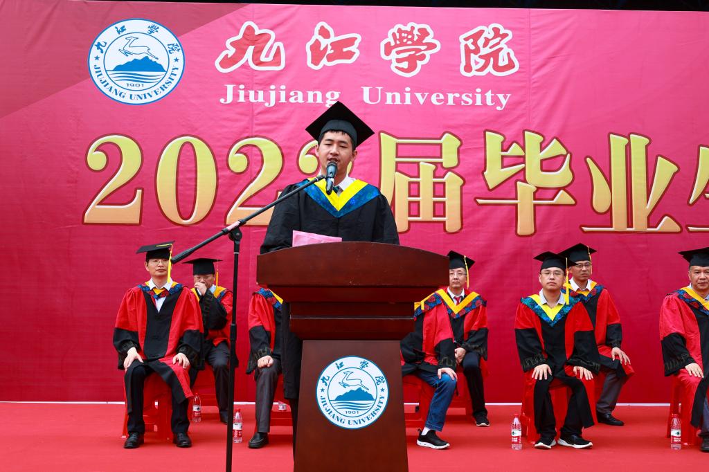 “我在九院的四年,我看见北区的篮球场、南区的足球场,相较于我大一时有着明显的翻新与改善;我跟随着老师们从课堂到课下,从教室到实验室,从科研到生产线。”毕业生代表、2021年大学生年度人物、叔子爱莲奖学金获得者化工学院A1821班李文豪同学在发言中表达了对学校和老师的深情感恩。