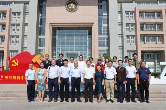 两校师生在美丽的郑州大学校园内合影留念