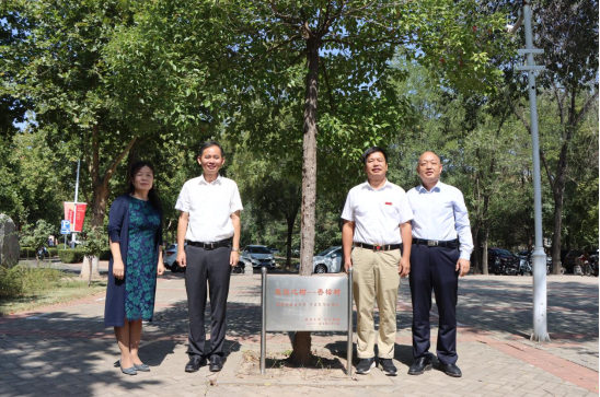 在郑州大学期间,我校师生在郑州大学师生的陪同下,来到了2011年两校师生共同手植的香樟树下。这棵香樟树位于郑州大学历史学院的教学楼前,被赋予了“承载白鹿的灵秀,守望嵩阳的博大”的深沉又美好愿望,是两校师生友好往来的见证。大家在香樟树下合影留念。