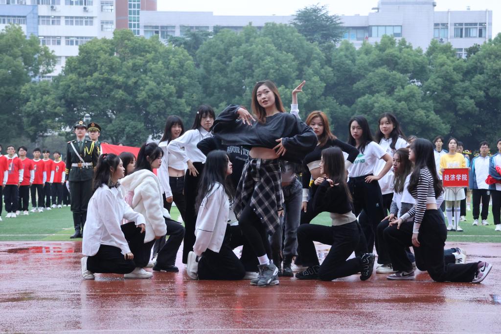 紧接着,鲜花队、彩旗队、裁判员方队和来自各个学院和学校教职工的22个运动员方阵也踏着矫健的步伐依次入场。击鼓表演、汉服舞蹈、纸牌拼字……运动会方阵入场精彩纷呈,各二级学院纷纷结合各自的学院和专业特色,用别出心栽的表演向党的二十大献礼。时尚新潮的音乐、青春曼妙的舞姿、铿锵响亮的口号,让人感受到了青春的活力、创造的激情;昂扬饱满的状态、勃发的英姿和别出心裁的方阵秀让现场的气氛瞬间热烈起来,掌声、欢呼声响彻云霄。