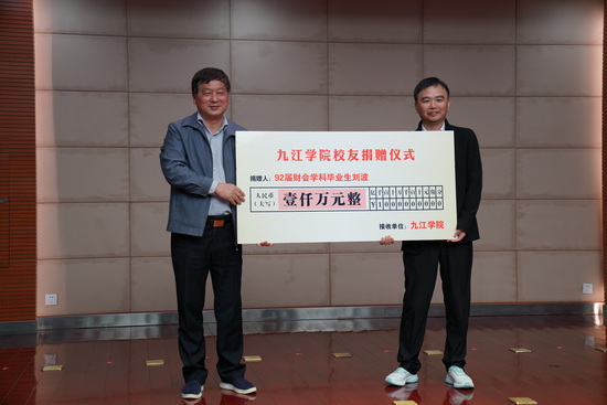 刘波是九江学院1992届财会学科毕业生,2010年创立私募基金公司。他表示,每每回首在母校读书的美好时光,特别是在图书馆学习的点点滴滴,让他感慨颇深。工作多年后,秉持着回馈母校培育之恩的心,他决定向九江学院图书馆捐赠人民币1000万元整,用于图书馆的改造升级及图书文献购买等,为学校教育发展事业添砖加瓦。刘波表示,希望能给予在校学子们更良好的学习环境,激励学子们奋发学习,追求梦想。