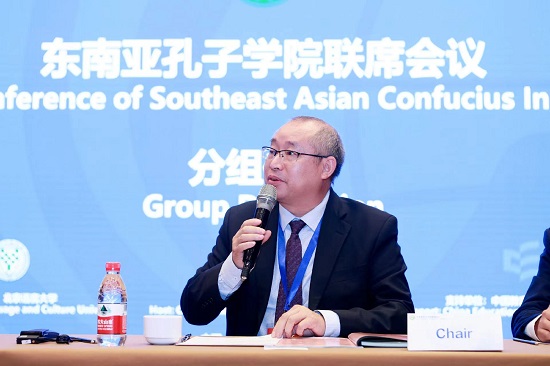 应中国国际中文教育基金会的邀请,陈小林在20日下午和21日上午的分组讨论中担任主持。分组讨论围绕“加强与中外方合作机构、企业、社会组织和其他孔子学院协同发展,为孔子学院争取相互支持”和“中文+特色课程和项目的开发与实施,助力东南亚国家社会经济发展”两个议题进行深入探讨,共同绘制东南亚地区孔院未来的美好蓝图。会后,陈小林接受了《人民日报》(海外版)采访。会议期间,陈小林还会见了我校合作院校泰国孔敬大学、清迈大学等学校校方代表,并同他们进行了亲切会谈。