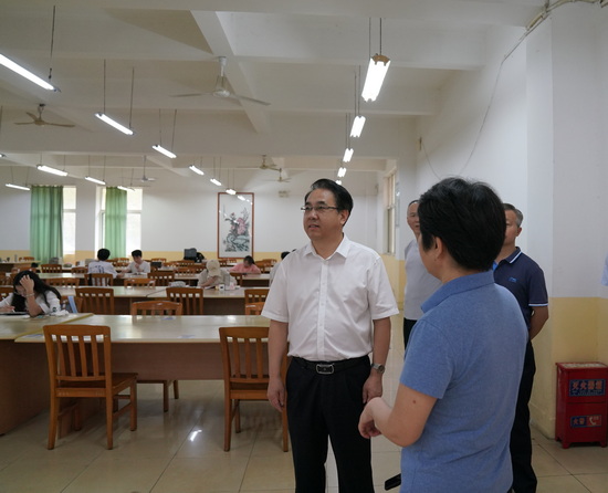 在检查中,李明斌一行现场认真听取了各相关单位情况汇报,查看了相关单位安全管理工作记录,了解了中秋、国庆期间校园安保值班安排、图书馆馆内秩序、食堂食品安全、实验室用电用气等安全管理制度落实等情况,并着重对重点部位消防设施设备配备及运行情况、用电安全、涉及危险化学品的相关实验室、危废处置以及智能制造中心建设工地施工安全等提出指导意见。