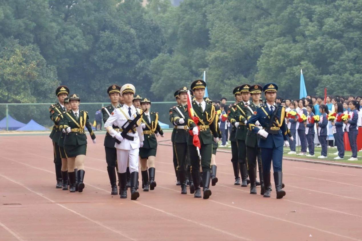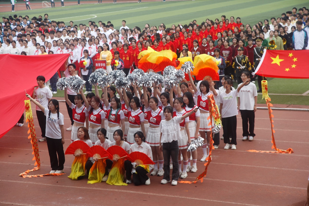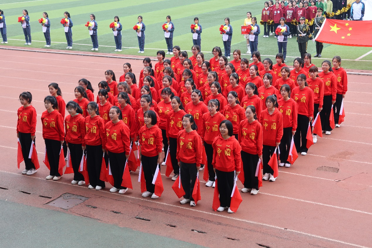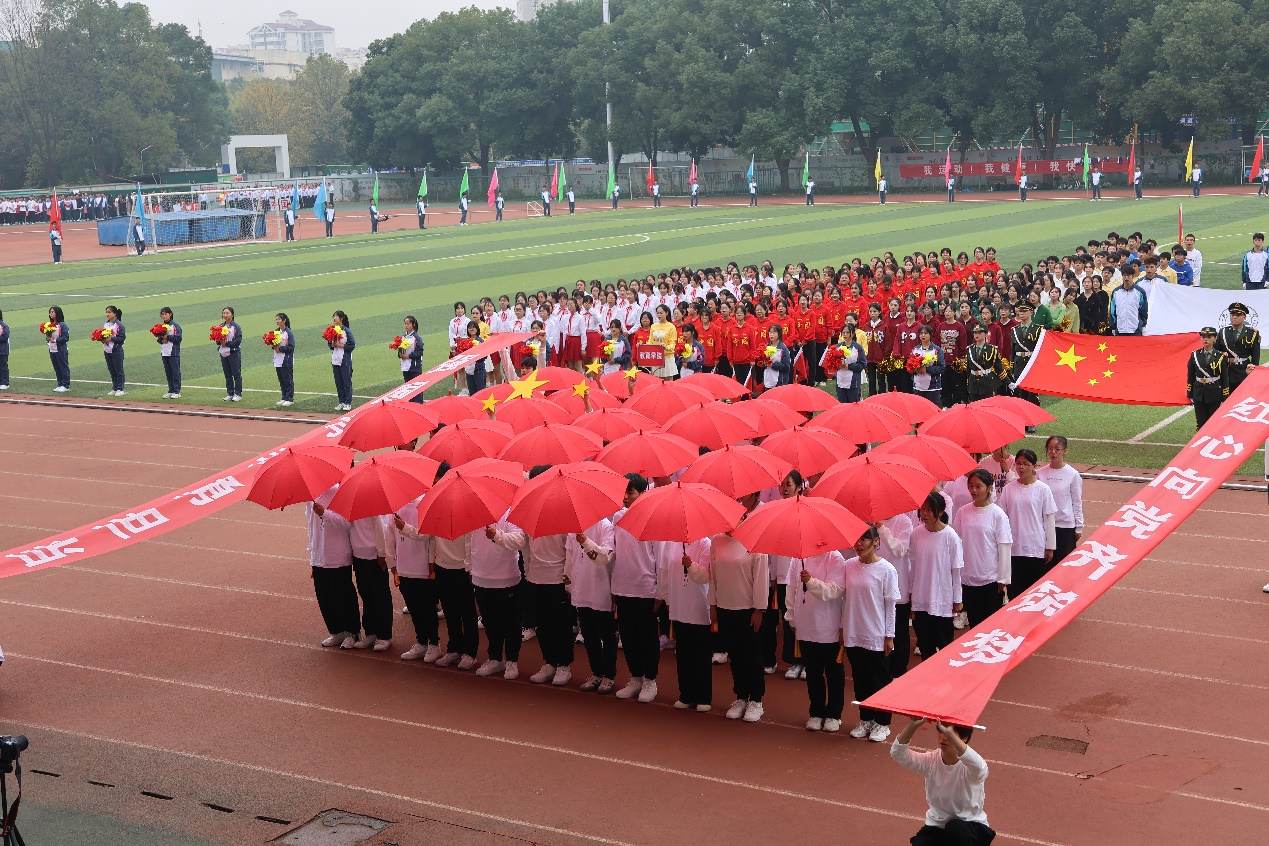 伴随着《运动员进行曲》铿锵有力的歌声,国旗、校旗、运动员会旗和会徽,以及鲜花队、彩旗队、各二级学院和教职工运动员组成的21个方阵队依次经过主席台。