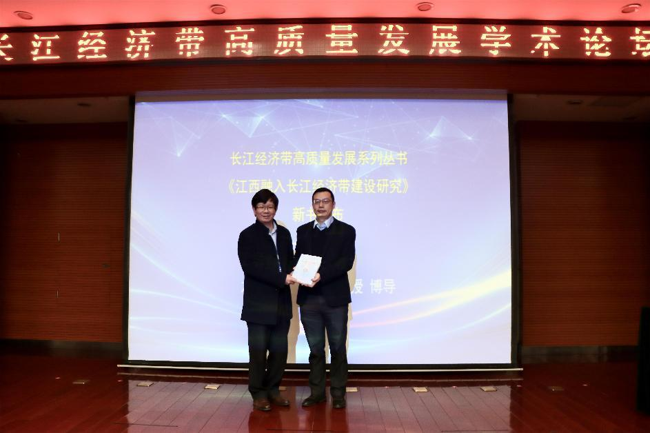 会议期间还举行了省哲学社会科学重点研究基地江西长江经济带研究院专家授聘仪式和长江经济带高质量发展系列丛书之一《江西融入长江经济带建设研究》新书发布仪式,吴志军受聘基地学术委员会主任,唐常春、宋志龙受聘基地兼职研究员。