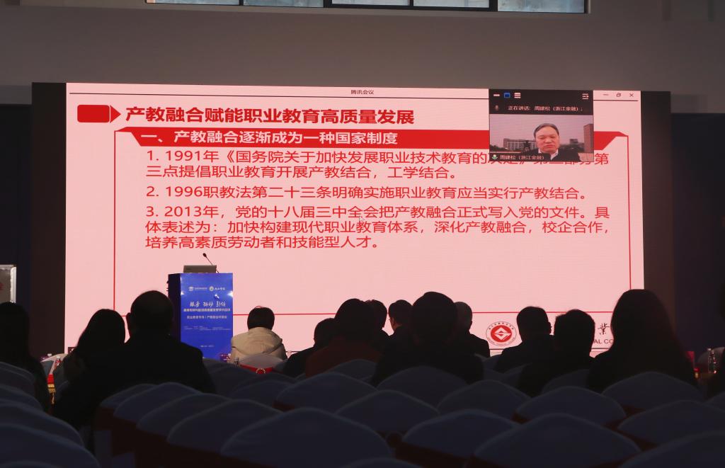 周建松作了题为《产教融合赋能职业教育高质量发展》的线上报告,他指出,产教融合是职业教育的基本办学模式和本质要求,要以党的二十大擘画的蓝图为范本,以深化产教融合的方式赋能职业教育的高质量发展。