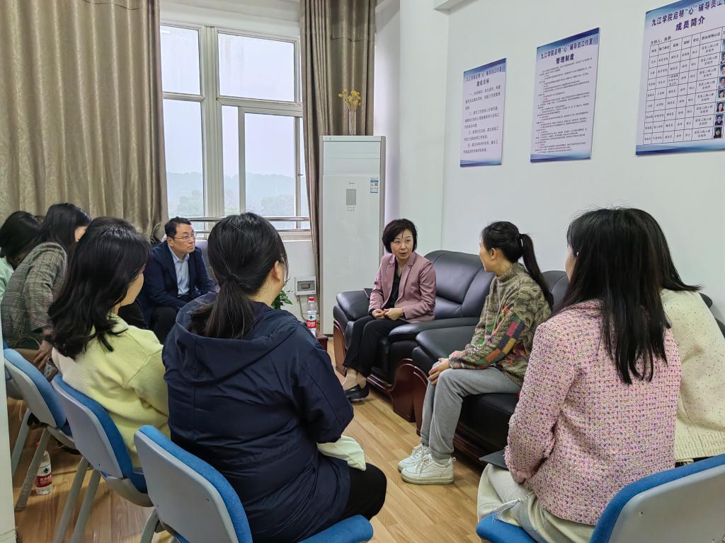 会后,靳教授来到教育学院启明“心”辅导员工作室进行实地指导,与工作室成员深入交流辅导员工作室建设。