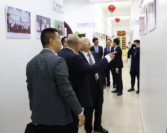 在参观孔院时,胡世忠深入了解了我校孔子学院发展历史、中文教学现状和文化交流成果,要求孔院教师不忘初心,在做好中文教学的同时,做好中柬文化的使者。