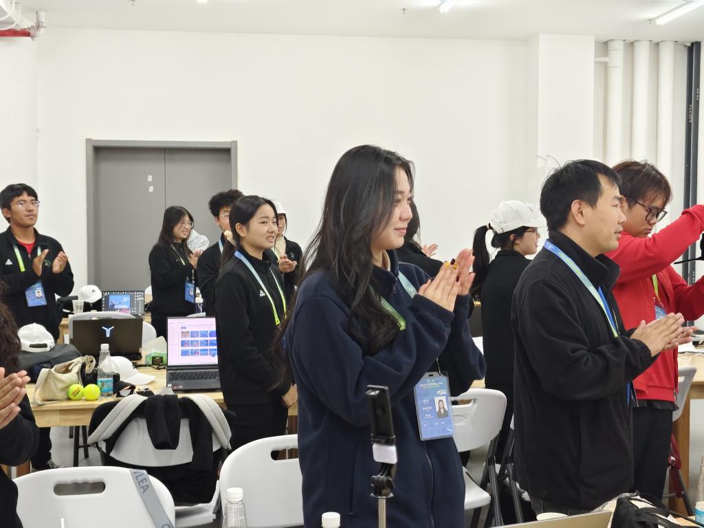 江西网球公开赛联合赛事总监沈红斌,九江市体育局党组书记、局长刘金梅,江西省体发公司相关负责人,以及我校党政办、团委、体育学院负责人等陪同。