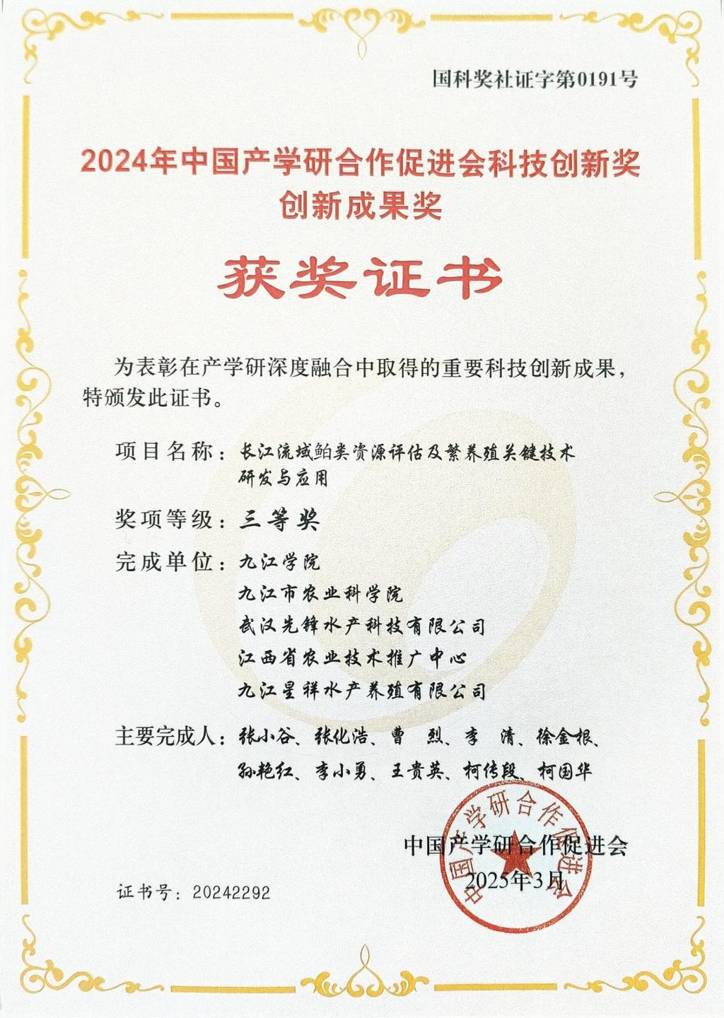 我校药学与生命科学学院鲤科鱼类科技创新团队主持完成的“长江流域鲌类资源评估及繁养殖关键技术研发与应用”荣获本届大会中国产学研合作促进会科技创新成果三等奖。这一成果不仅为长江流域鲌类资源的可持续利用提供了科学支撑,也在水产养殖技术创新与产业转化方面发挥了重要作用。