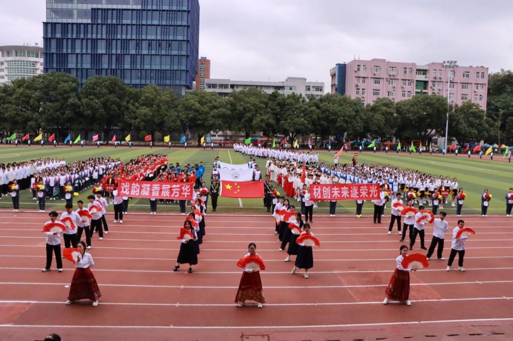 在雄壮激昂的乐曲声中,国旗护卫队、鲜花方队、彩旗方队、裁判员方队、各二级学院方队以及研究生方队、教职工方队依次入场。他们以整齐的步伐、昂扬的姿态走过主席台前,充分展现出九江学院师生的活力与风采,二级学院各具特色的精彩亮相也引起了全场观众的热烈反响,场上的掌声与喝彩声连绵不绝。