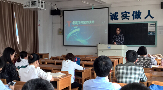 为了科学合理地使用多媒体设备,减少人为使用不当造成故障,更加高效地为教学服务,从今年4月份开始,实验中心举办“多媒体教室的使用”培训讲座,此次讲座由各学院自行组织教师、确定时间和自选定教室,教学设备维修科派专业人员进行培训。