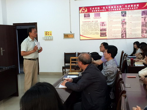 当日上午,艺术学院院长吴维勇、党委书记王春生及数百名师生认真聆听了曾唯斌教授的主题报告。汶川地震后,曾教授长期致力于灾区学校艺术教育援助工作,努力用人文与艺术的关怀帮助汶川地震后的孩子们走出心理阴霾,并与各界爱心人士一起创作了《地震种子:向峨乡村艺术教育实验》。7年来,曾教授投入了大量的心血,平均一年在中美之间往返四次,为灾区的孩子们带去了美国、中国包括九江的资助与问候。报告会上,曾教授还讲述了来自中美两地的孩子创意烧制1000多块小瓷砖画组成艺术墙的故事,克服重重困难重建向峨小学校园的过程,以及他个人对乡村艺术教育进行的思考与领悟。报告会现场的师生都被这看似平凡实则伟大的情怀深深的打动了。