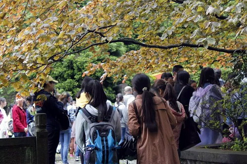 一般三十人左右一个小组,分别由植物学专业老师带领,认识庐山各种植物。为了安全管理,一般每个班还安排班主任或辅导员跟随。庐山由于山地自然条件的复杂性,许多植物比平原更有条件保存下来,为保存古老类型如鹅掌楸、擦木、大血藤、紫树等提供了有利条件。一出门,到处都是植物,带队专业老师随手指一棵植物就开始滔滔不绝地给同学们介绍起来了,“这是羊蹄,廖科,它啊,可以治疗便秘啊,跌打扭伤;这是牯岭牯凤仙花可以止痛,肚痛啊,牙龈溃烂啊……”同学都争相围着老师,希望能多学到一些知识。