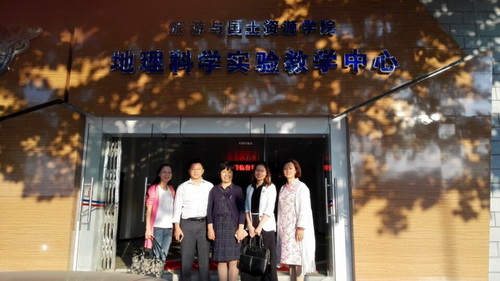 讲座开始前,刘教授还亲切的与地理专业老师座谈并参观了专业实验室。