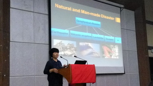 刘教授结合国外地理学学科的办学情况,介绍了地理学研究层次和当前地理专业的广阔前景。刘教授紧紧围绕“灾害管理和现代地图学”这个主题,着重介绍了灾害管理的步骤和环节以及联合国在灾害管理方面所做的工作。她强调现代地图学必须注重新技术的应用,并以汶川地震和天津滨海新区爆等事件为例,介绍了现代地图学在灾后管理中的应用。