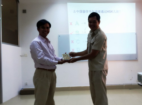 11月10日,柬埔寨王家研究院孔子学院在参议院汉语中心举办了汉语水平考试(HSK)知识讲座。讲座由九江学院外派教师张文锋主讲。参议院秘书局培训办主任诺昆(Nop Kuch)先生应邀做“中国文化体验活动”主题发言。