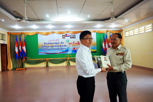 活动最后,谢莫尼勒院长向云明省长赠送了由柬埔寨王家研究院孔子学院编写和出版的《千年中柬友谊》等书籍。