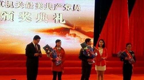 经过市直各单位申报、市直机关工委组织评选,共评选出11名市直机关“最美共产党员”。12月2日下午,市直机关工委在九江电视台演播大厅举办了“最美共产党员”颁奖典礼,九江市委和市直机关工委领导为获得“最美共产党员”称号的党员同志颁奖。我校艺术学院学生在颁奖典礼上表演了大合唱《共圆中国梦》。