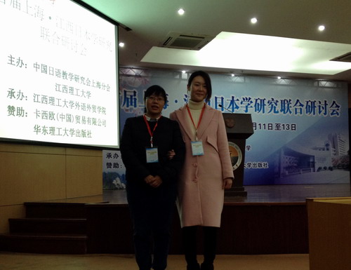 12月11日—12日,首届上海•江西日本学研究联合研讨会在江西理工学院举行。此次研讨会由江西理工大学和中国日语教学研究会上海分会主办,江西理工大学外语外贸学院承办,卡西欧(中国)贸易有限公司、华东理工大学出版社赞助支持。来自北京外国语大学、中山大学、大连外国语大学、安徽师范大学、日本上智大学等国内外知名高校师生参加了本次研讨会。  我校教师王颖,王蕊也参加了此次日语界的盛会。