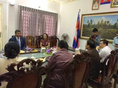 4月2日,谢莫尼勒阁下陪同王家研究院院长克洛媞达院士(Academician Khlot Thyda)拜访了柬埔寨教育青年体育部部长洪尊那隆博士(Dr. Hang Choun Naron),汇报了孔子学院组织汉语中心校长团赴厦门参加“中国—东盟中学校长论坛” 的有关情况及孔子学院承办“第九届中国-东盟教育交流周留学中国教育展暨黔柬高校合作交流洽谈会暨签约仪式”的筹备工作。洪尊那隆博士对孔子学院组织中柬教育交流的有关活动表示赞赏,并表示会大力支持“第九届中国-东盟教育交流周”活动,对他本人因出国访问不能参加“第九届中国-东盟教育交流周”的有关活动表示遗憾。