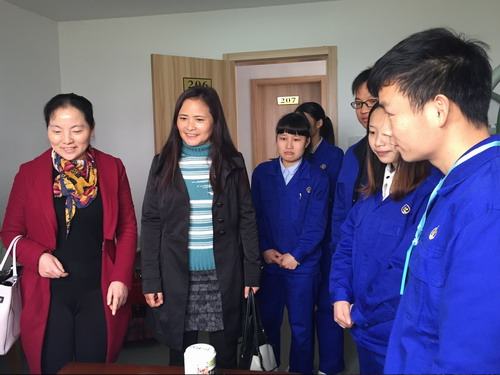 考察期间,严书记一行还深入企业生产一线、质检部门、研发部门、宿舍、食堂以及文体场所等进行考察,看望了学院2016届毕业实习生。严书记与同学们亲切交谈,详细了解学生实习的工作内容以及实习期间的生活、饮食、工作时间等情况,叮嘱同学们一定要注意安全,严格遵守单位规章制度和实习纪律,勉励他们要认真学习,扎实工作,不断提高实践能力,以良好的工作业绩展示出药生学院学子的精神风貌和专业水平,为母校树立良好的形象。