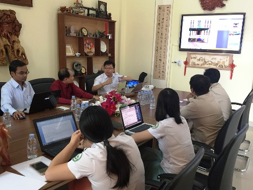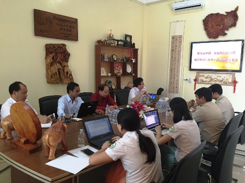 4月19日上午,“第九届中国·东盟教育交流周留学中国(贵州)教育展”工作会议在柬埔寨王家研究院孔子学院召开,柬埔寨王家研究院孔子学院院长谢莫尼勒阁下(H.E. CHEA Munyrith)、中方院长帅式毅先生,柬埔寨参议院秘书局培训办主任诺昆先生(NOP kuch),亚欧大学校长谢索皮博士(Dr. CHEA Sopheap) 、副校长孙色塔(SUN Setha),国防部信息办副主任钦那塔(CHIN Ratana)以及公派教师朱虹、曾海兰出席本次会议。本次会议就即将在柬埔寨王家研究院孔子学院举办的留学中国(贵州)教育展的各项工作事宜进行商讨与安排。