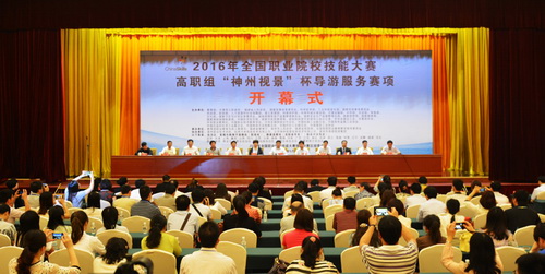 5月10日,2016年全国职业院校技能大赛(高职组)导游服务赛项在福建省漳州市举行。国家旅游局党组成员、人事司司长、全国旅游职业教育教学指导委员会主任魏洪涛,教育部行指委工作办公室常务副主任王国川,全国旅游职业教育教学指导委员会秘书长、北京第二外国语学院副院长韩玉灵等出席了大赛开幕式。