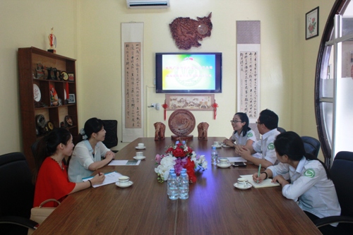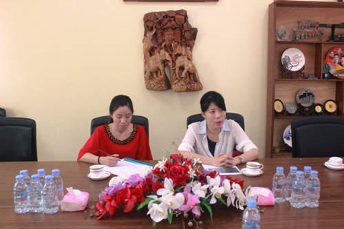 5月18日上午,广东外语外贸大学代表萧静中女士、陈洁洁女士到访柬埔寨王家研究院孔子学院,孔子学院院长、参议院顾问谢莫尼勒阁下(H.E.CHEA Munyrith)、公派教师朱虹老师会见了代表团一行,宾主进行了友好会谈。