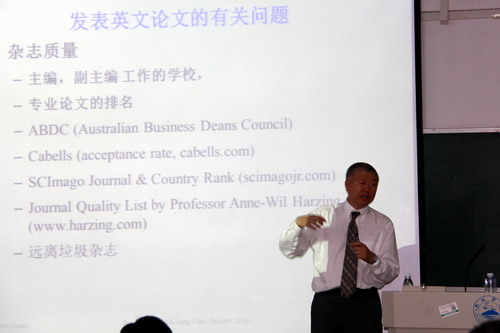 5月25日下午,美国南佛罗里达大学圣彼得堡分校商学院关伟教授,应邀来到会计学院立信楼404做讲学报告,会计学院全院教师聆听了讲座。会计学院院长陈小林主持讲座。