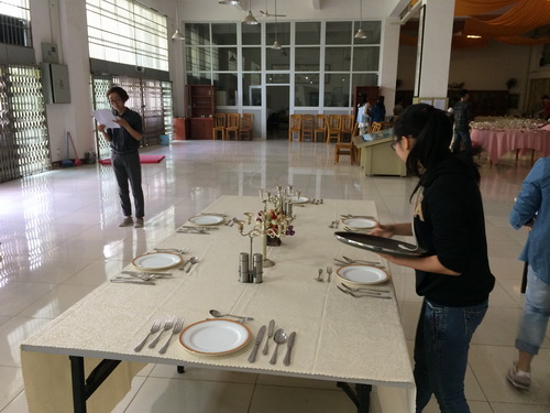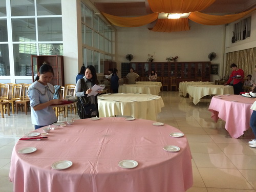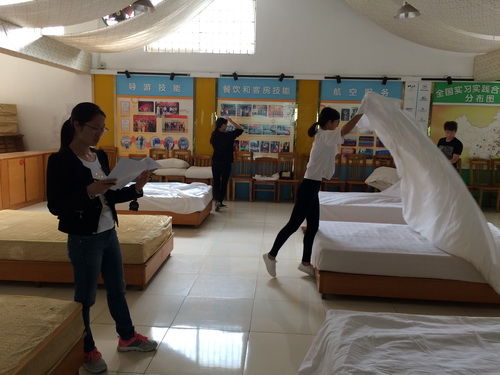 测试中,学院派出五名专业老师对学生的中餐、西餐、客房、前厅、等各个部门岗位操作技能和岗位职责进行了全面测试。检验学生在酒店实习六个月的收获。