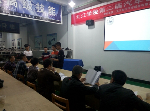 10月18日下午,由机材学院汽车教研室主办,机材学院团委协办的九江学院第二届汽车创新设计大赛在汽车实训中心成功举行。该项赛事由九江学院科技园入园企业九江知行汽车服务有限公司和华胜奔驰宝马奥迪专修连锁九江店友情赞助。参加该项赛事的嘉宾有机材学院党委书记陈胜才、九江知行汽车服务有限公司和华胜奔驰宝马奥迪专修连锁九江店汽车专家、机材学院副院长李养良、黄强,以及参赛的老师和同学们共计60余人。