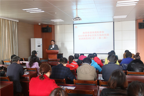 11月11日上午,由临床医学院/附属医院主办的第三期社区卫生服务站培训班在临床医学院/附属医院技能中心如期举行。来自市内各社区卫生服务站40余名医护人员参加了培训。张志平院长、欧阳庆雯副院长到场指导。