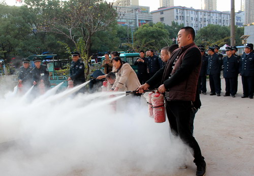 接着,学校保卫处消防科刘干事就校园消防安全工作进行了辅导。刘干事从在发生火情时如何报火警、如何扑救初起火灾,如何疏散逃生、如何正确使用灭火器材等方面进行了详细地讲解和演示,随后,培训班全体学员进行了现场灭火演练活动。参训人员结合所学的消防技能,在保卫处专业人员的指导下,对模拟火灾进行灭火,大火迅速被扑灭。