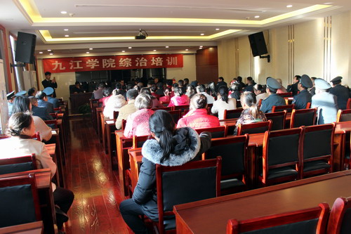 为进一步做好学校综治维稳工作,切实提高全校师生参与综治工作的积极性和安全防范意识。11月10日下午,学校在濂溪宾馆二楼会议室组织2016年下半年综治业务学习培训。参加这次培训学习的有学校安保人员及各部门兼职综治专干。