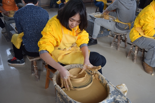 12月10日,营员们来到的是哇陶DIY乐园,陶艺制作体验是来这里的重点项目,进行了拉坯、捏雕、彩绘、烧窑以及陶瓷首饰DIY等全面的陶艺制作学习和培训,亲身参与了陶瓷文化体验和实践。来自马来西亚的王敬楷说道,“此次景德镇之行,印象最深刻的是陶瓷DIY,刚开始的时候根本做不成形状,后来在师傅的指导和自己的摸索中,慢慢找到了门道。最大的收获是“耐心”,像以前,我大可以扔在一边去洗手,可是这一次我没有放弃,而是不断尝试,看着自己的陶泥在双手下慢慢成型,还挺开心的!”据了解,他也在陶瓷大市场买了一些陶瓷制品,准备回去送给家人。