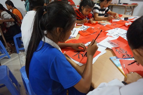 柬埔寨孔子学院西哈努克省高级中学汉语中心西港特区培训班举办“醉心翰墨千年韵,笔墨飘香迎新春”新年活动