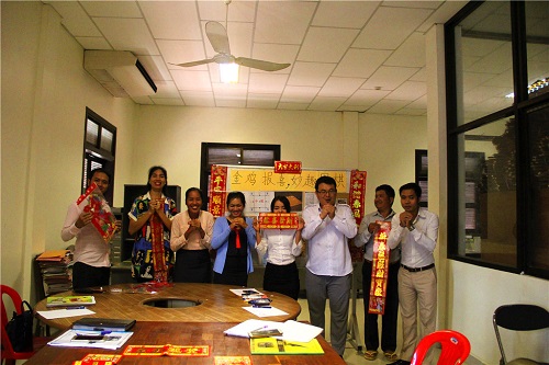 活动开始,官员班负责教师刘振以视频和图片等形式向学员讲解了春节和围棋的有关知识。接着,通过向学员们分发对联和红包等形式,让学员们亲身体验了春节文化。学员喜莲和苏铁思是今年的新学生,他们在体验完春节文化后,祝福孔子学院和教师们新春快乐、鸡年大吉。