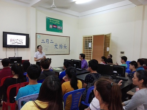 柬埔寨孔子学院西哈努克省高级中学汉语中心举办“龙头节”文化讲座