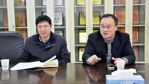 花书记首先代表学院对黄院长、杨书记一行来访表示欢迎。随后,他从学院历史沿革、学科专业建设、机构设置、师资队伍、人才培养以及创新创业特色教育等方面简要介绍了我院基本情况。项副院长就目前正在开展的学院文化建设的基本思路、建设目标以及主要措施等作了详细阐述和交流。