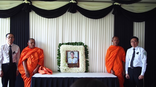 3月15,柬埔寨王国副首相索安(H.E. Sok An)亲王在北京因病逝世,享年66岁。为了悼念索安亲王,3月18日下午,柬埔寨王家研究院孔子学院在本部举行了悼念活动,孔子学院院长谢莫尼勒(H.E.CHEA Munyrith)、中方院长夏修龙和院长助理陈晶雯老师携金边区汉语教师40余人参加了悼念会。