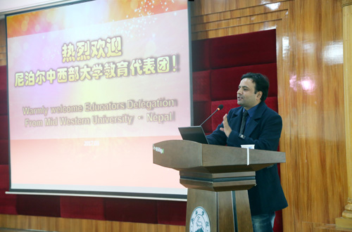尼泊尔中西部大学执行校长Upendra也代表尼泊尔中西部大学作了致词,他对临床医学院/附属医院的热情接待表示衷心感谢,希望双方日后在学术交流、医学教育等方面开展广泛的合作。Upendra校长对在临床医学院/附属医院实习的留学生提出了殷切希望,他说,在座的留学生们来到中国,他们的身份不仅仅是学生,更是尼泊尔的形象大使,希望他们在九江学院临床医学院/附属医院扎实学好中国的先进医学知识。